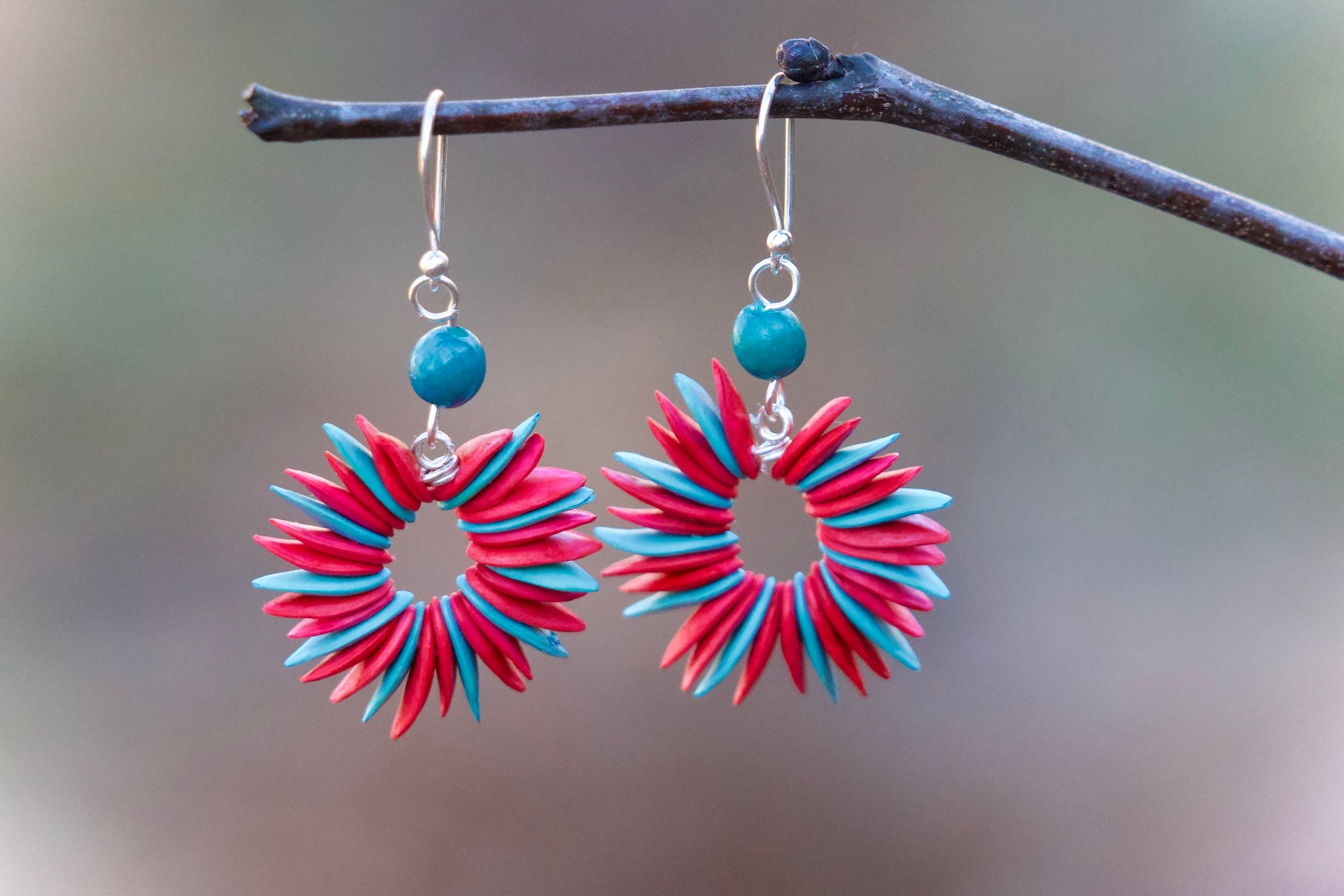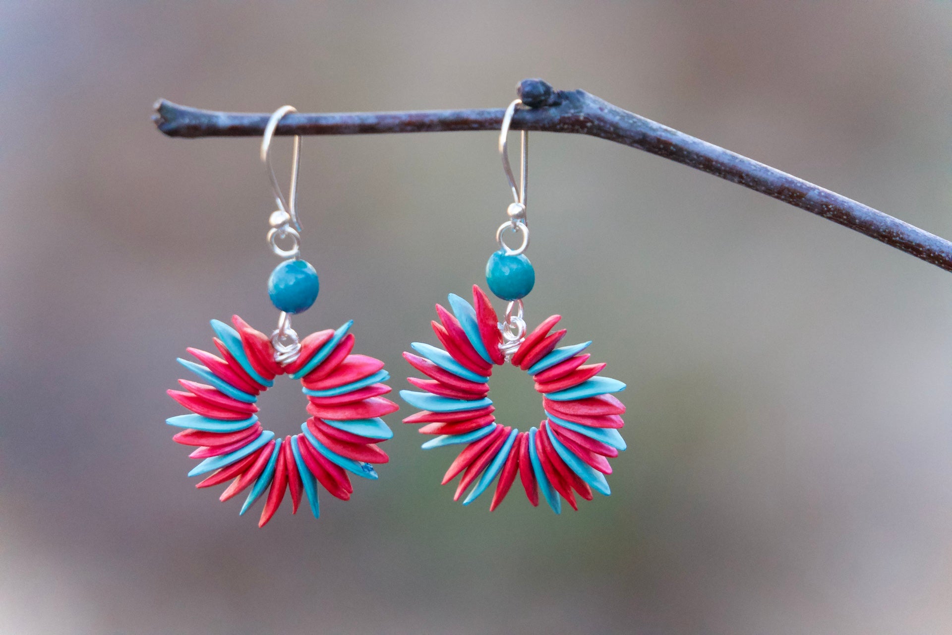 Delicately handcrafted, these earrings are a true masterpiece of art, boasting a unique vibrant colors that captivate the eye. Their lightweight design ensures comfort for all-day wear, while their elegant and playful style adds a touch of joy to any outfit.