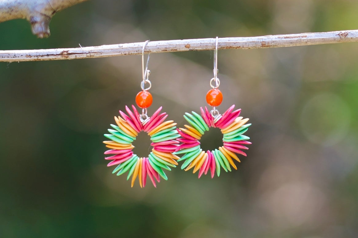 These earrings are a true masterpiece of art, boasting a unique vibrant colors that captivate the eye. Their lightweight design ensures comfort for all-day wear, while their elegant and playful style adds a touch of joy to any outfit.