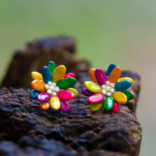 Delicately handcrafted, these earrings are a true masterpiece of art, boasting a unique blend of colors that captivate the eye. Their lightweight design ensures comfort for all-day wear, while their elegant and playful style adds a touch of joy to any outfit.