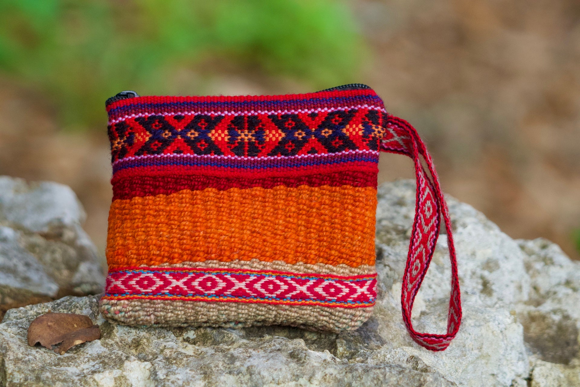 Exquisite coin purse intricately hand-woven with soft sheep's wool. Ideal for those in need of a petite cash and coin carrier.