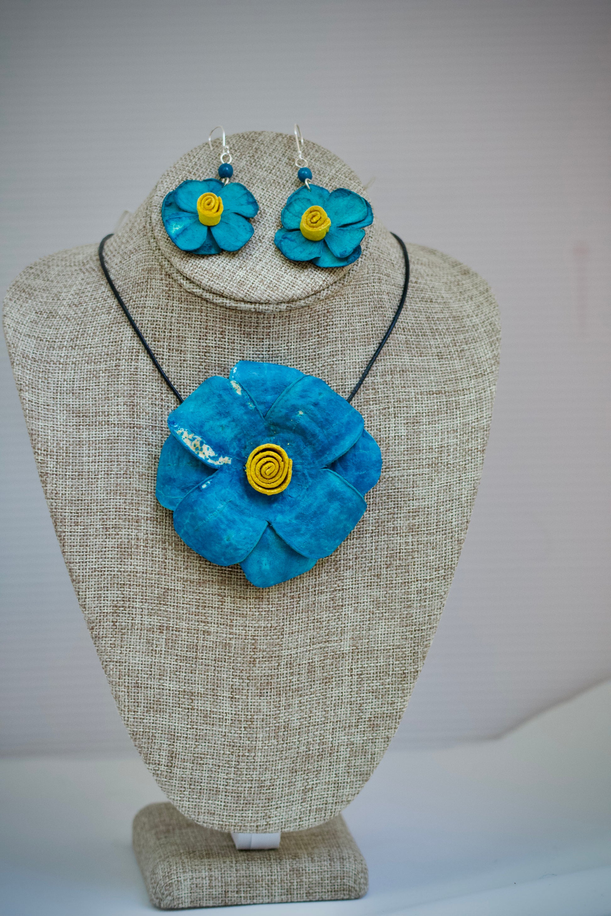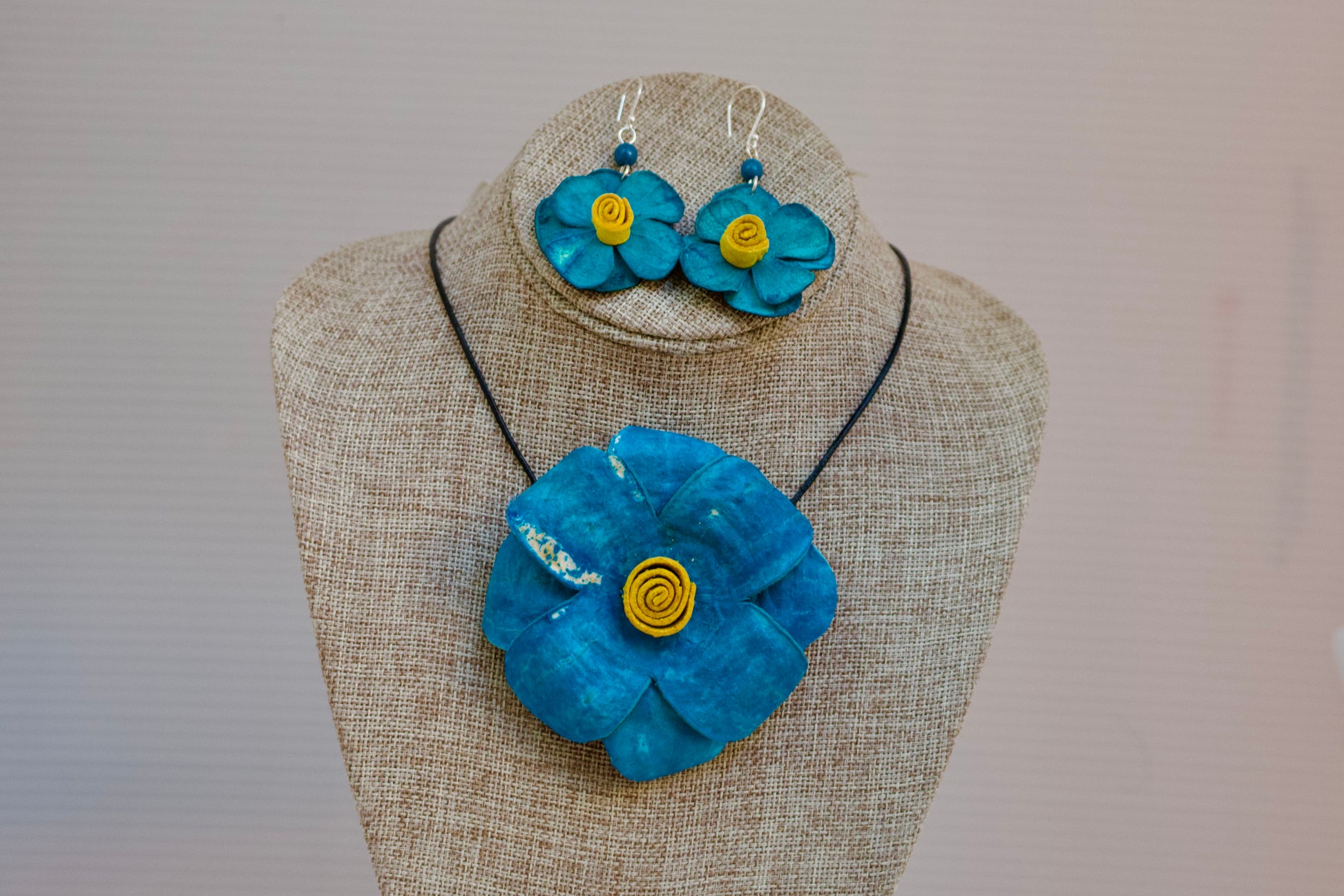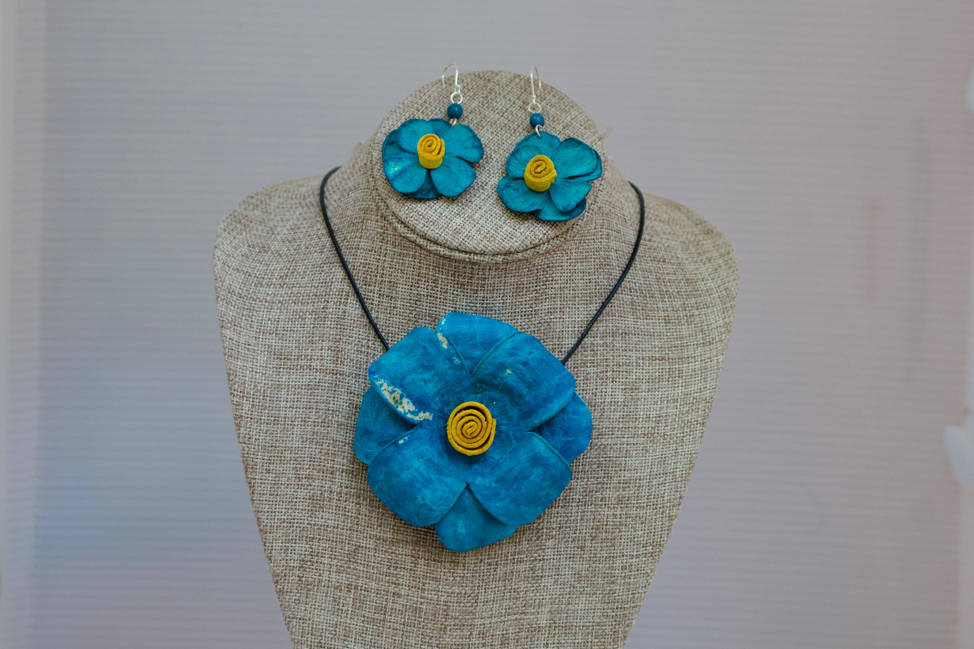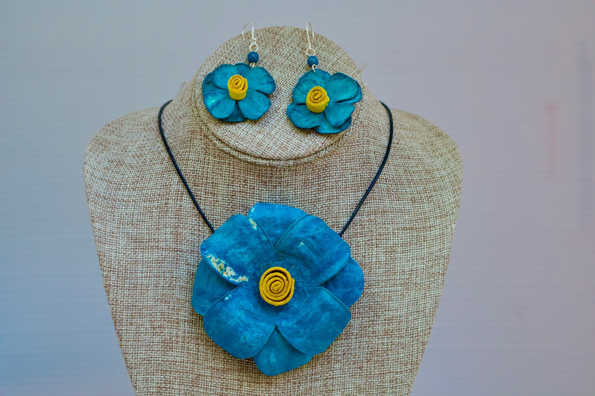 Unique set earrings and necklace made from carefully shaped and dehydrated lime peels, transformed into elegant flower shapes.