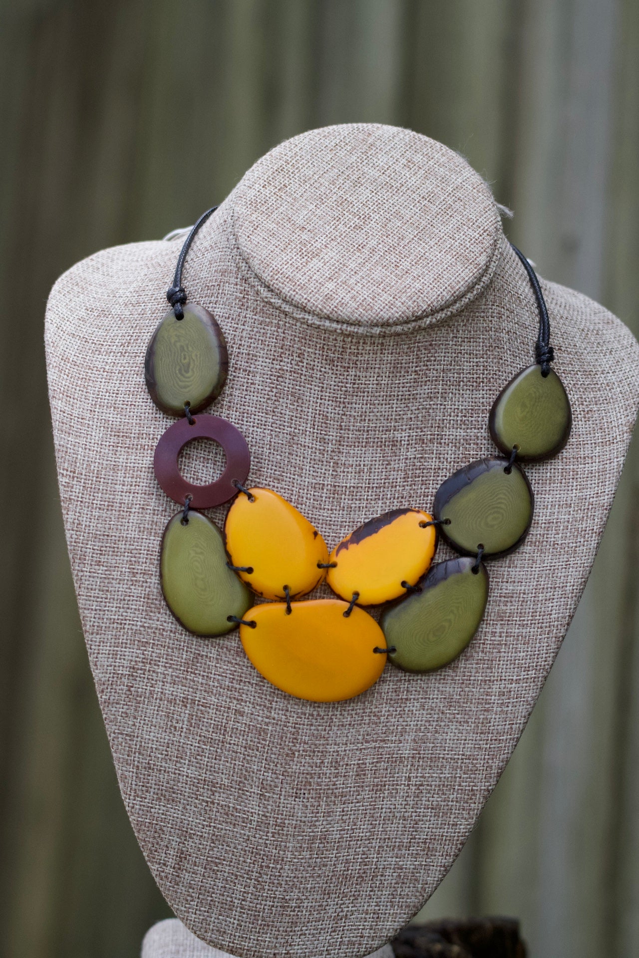 Introducing our exquisite necklace made from handcrafted, natural tagua seeds. Tagua, also known as "natural ivory," comes from the seed of a palm tree. Each piece is carefully crafted with love and attention to detail.
